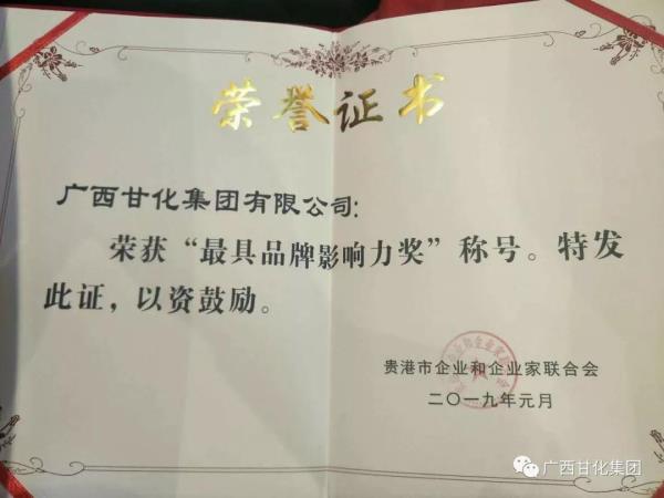 近年來,作為副會長單位的廣西甘化集團有限公司在貴港市的經(jīng)濟建設(shè)中做出的貢獻突出,勇?lián)鐣熑?,在本次年會中分別榮獲“最具品牌影響力獎”和“突出貢獻獎”兩個榮譽稱號。