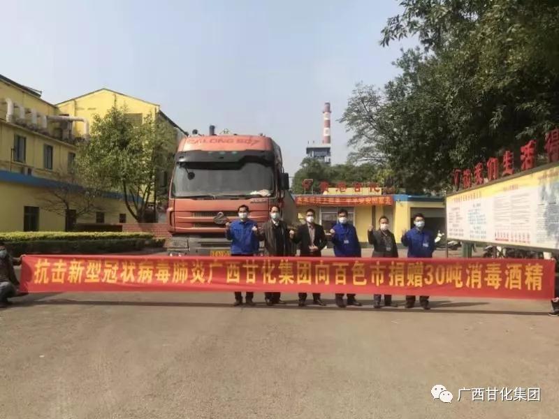 2020年1月30日,在黨和政府的號召下,廣西甘化集團有限公司自發(fā)向貴港市人民政府捐贈消毒酒精20000公斤、向貴港市覃塘區(qū)人民政府捐贈消毒酒精2000公斤、向百色市人民政府捐贈消毒酒精20000公斤、百色市右江區(qū)人民政府捐贈消毒酒精10000公斤,累計捐贈酒精52000公斤,該批捐贈的酒精預(yù)計于2020年2月1日前全部運輸?shù)竭_各地。同時,廣西甘化集團有限公司下屬子公司廣西貴港市甘化酒精有限公司已加快安排生產(chǎn)。在抗擊疫情期間,廣西貴港市甘化酒精有限公司將竭盡全力生產(chǎn)酒精,承諾不哄抬價格、及時向社會供給酒精,為抗擊疫情提供物資保障。