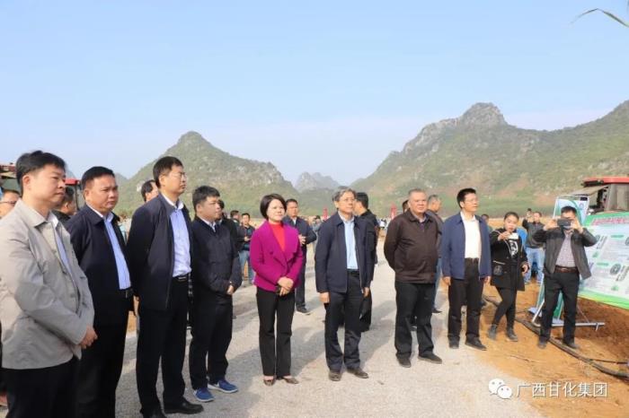 2020年12月2日“2020年全國(guó)糖料高質(zhì)量發(fā)展推進(jìn)落實(shí)會(huì)”在甘化集團(tuán)貴港片區(qū)顯滕“雙高”基地開展現(xiàn)場(chǎng)觀摩甘蔗生產(chǎn)全程機(jī)械化作業(yè)。農(nóng)業(yè)農(nóng)村部種植業(yè)管理司、貴港市委、覃塘區(qū)委等領(lǐng)導(dǎo)到現(xiàn)場(chǎng)觀摩,集團(tuán)董事長(zhǎng)林寧陪同觀摩并介紹雙高基地建設(shè)成效及新榨季生產(chǎn)情況。