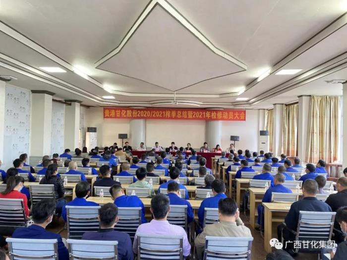 廣西甘化集團(tuán)有限公司貴港片區(qū)子公司——貴港甘化于2021年3月24日下午召開(kāi)了“2020/2021榨季總結(jié)暨2021年檢修動(dòng)員大會(huì)”,集團(tuán)董事長(zhǎng)林寧、集團(tuán)常務(wù)副總裁曹林希、貴港甘化總經(jīng)理黃敏昭及公司領(lǐng)導(dǎo)班子、班組長(zhǎng)以上員工代表等130多人參加了會(huì)議。