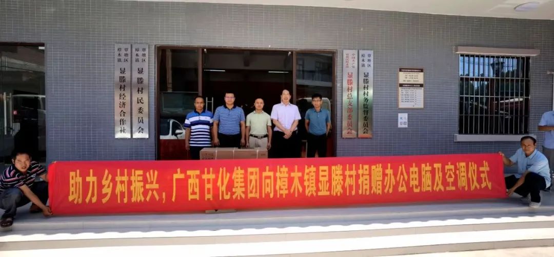 8月1日上午,廣西甘化集團有限公司向貴港市覃塘區(qū)樟木鎮(zhèn)顯滕村民委員會贈送辦公用品儀式在該村村民委員會辦公樓前舉行,樟木鎮(zhèn)黨委副書記譚宏義、貴港甘化股份有限公司劉曉東副總經(jīng)理、顯滕村民委員會黨支部書記、村委主任郭慶杉出席了活動。