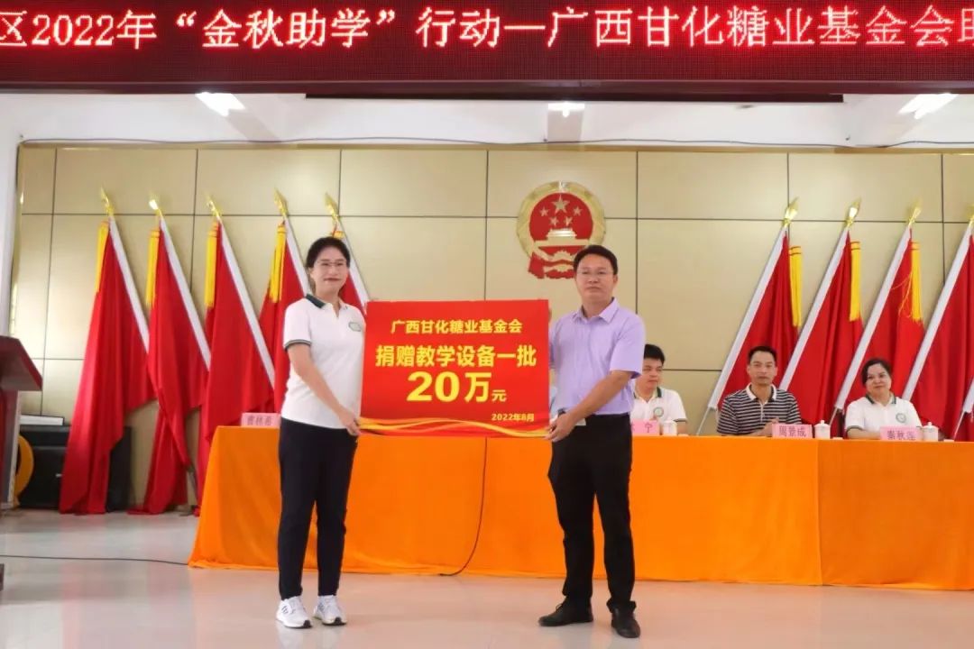 8月27日上午,由廣西甘化集團(tuán)有限公司及其董事長(zhǎng)夫婦作為發(fā)起人注冊(cè)的廣西甘化糖業(yè)基金會(huì)在覃塘區(qū)樟木鎮(zhèn)設(shè)立的甘化勵(lì)志獎(jiǎng)學(xué)金成立暨首次發(fā)放儀式在樟木鎮(zhèn)政府禮堂圓滿舉行。