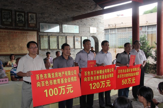 百色萬林糖業(yè)有限公司、百色市海龍房地產(chǎn)有限公司、百色市必晟礦業(yè)有限公司分別向百色市教育基金會(huì)捐款
