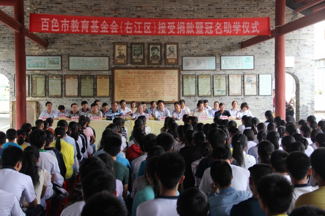 百色市教育基金會(huì)(右江區(qū))接受捐款暨冠名助學(xué)儀式在百色中學(xué)紅禮堂舉行
